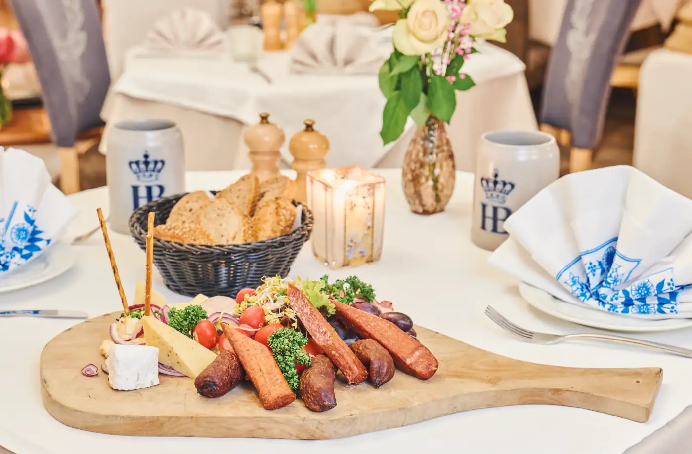 Kulinarisch haben wir im Restaurant München Süd viel für Ihre Firmenfeier aufzutischen. Je nach Wunsch stellen wir Ihnen verschiedene Menüvorschläge oder eine Auswahl bayerischer Spezialitäten à la Carte zusammen. Natürlich bieten wir Ihnen auf Anfrage auch vegetarische und vegane Speisen sowie eine große Vielfalt an Desserts an. Und wussten Sie schon, dass wir ein exzellentes Angebot an Rot- und Weißweinen aus unserem Weinkeller München haben? Gerne gehen wir mit Ihnen zusammen Ihr Wunsch-Menü durch und stehen Ihnen bei der Getränke- und Wein-Auswahl für den Abend zur Seite.