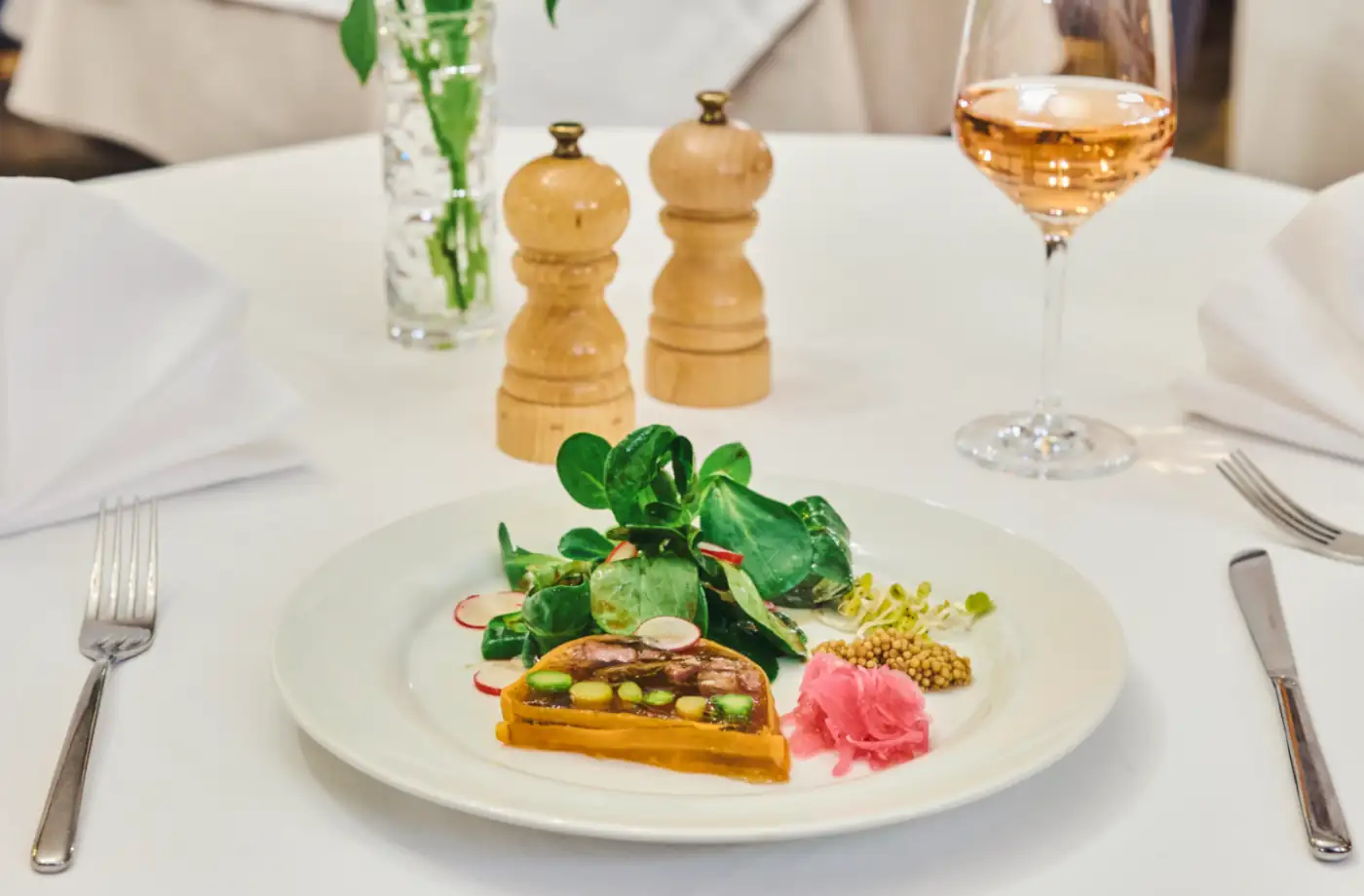 Saiblingsfilet von der Aumühle mit Tomaten-Mandelbutter, Wurzelspinat und Ofendrillingen